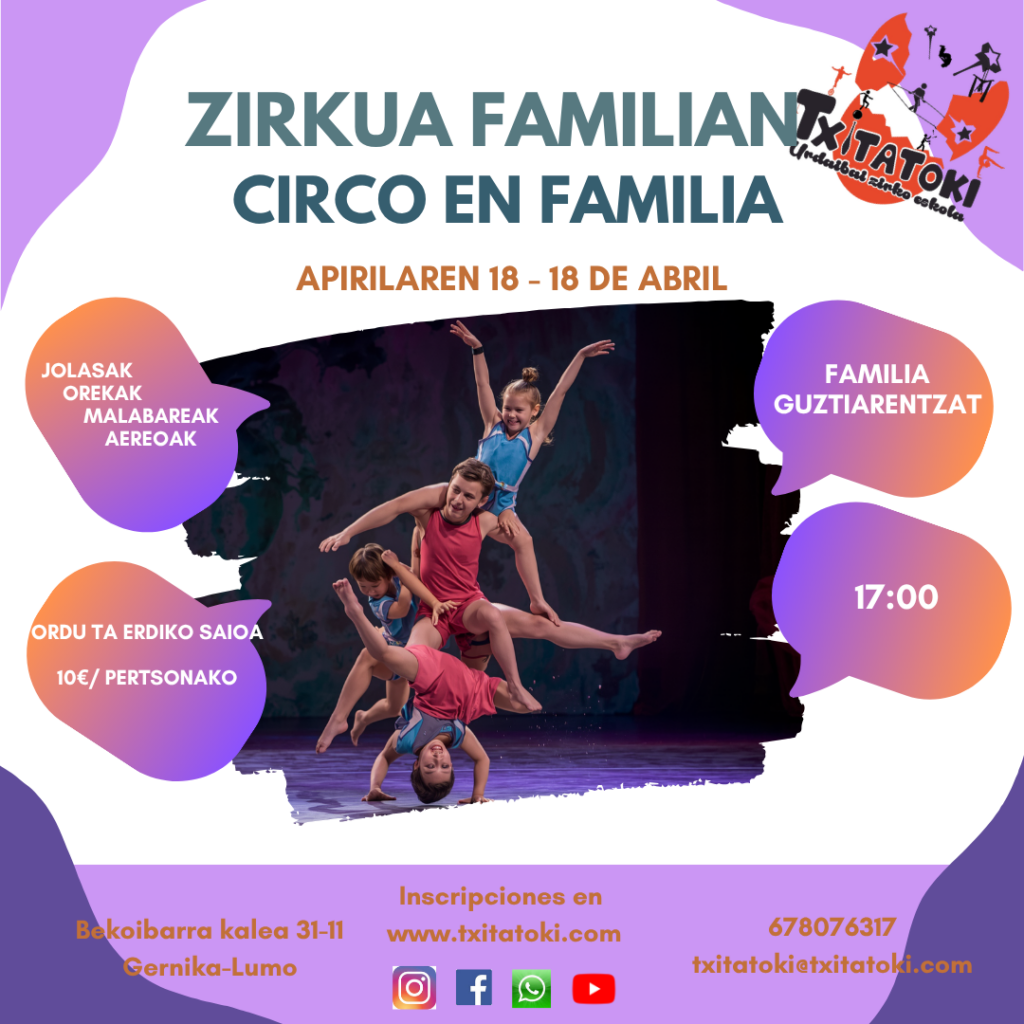 Txitatoki Urdaibai Zirko EskolanFAmilian pasatzeko zirkuko saioak antolatzen ditugu.